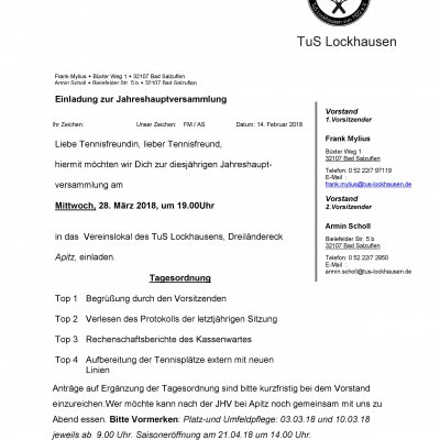 Jahreshauptversammlung Tennisabteilung