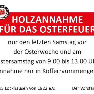 Wir freuen uns auf zahlreiche Besucher zu unserem traditionellen Osterfeuer am Ostersonntag bei uns am Sportplatz in Lockhausen.